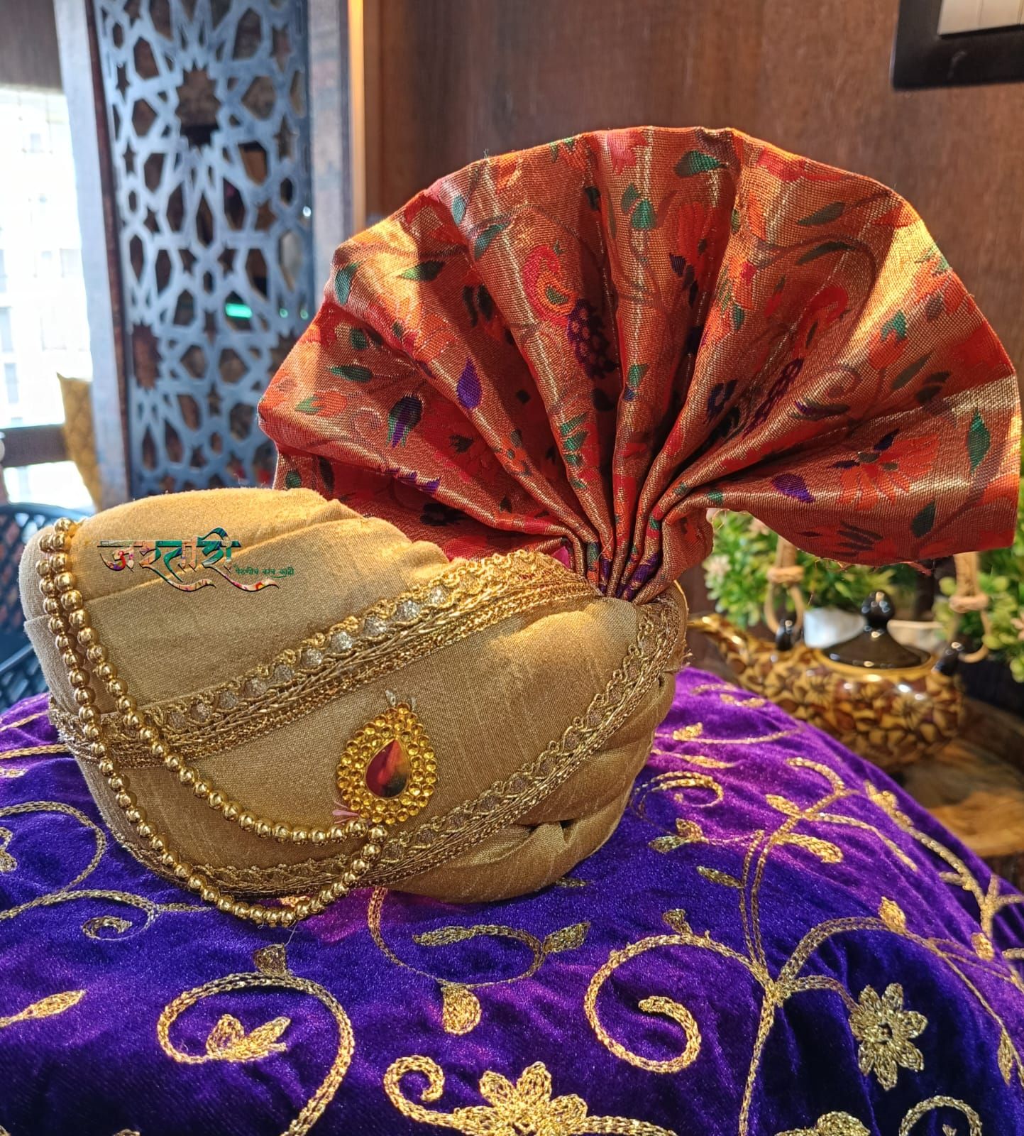 A royal headwear crafted in rich Paithani silk, perfect for weddings, rituals, and festive occasions.